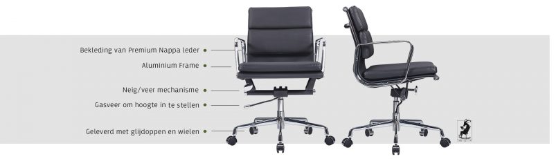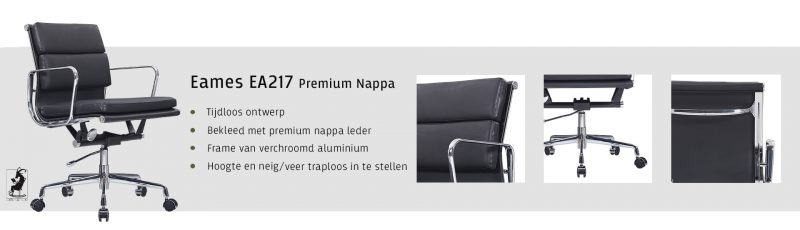 De softpad bureaustoel EA217 van Eames is een iconisch ontwerp. Deze uitvoering in nappa leer is een premium model. Met de juiste ergonomische instellingen past u deze stoel gemakkelijk aan uw eigen wensen aan. Kortom; een prachtige stoel van designer duo Charles & Ray Eames in een luxueuze, premium uitvoering die nog dichter bij het origineel komt.