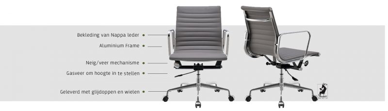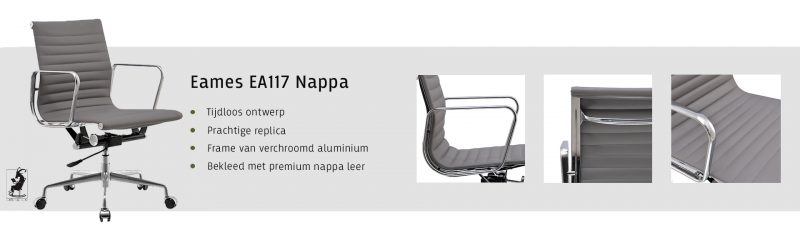 Deze premium versie van de EA117 is een prachtige kwalitatieve bureaustoel die volledig bekleed is met nappa leder, en op verschillende punten is verbeterd qua luxe, comfort en materialen. Dit welbekende model van ontwerpers Charles & Ray Eames is een geliefd stukje interieurdesign. Deze bureaustoel is nogsteeds geliefd bij menig interieurliefhebbers en is daarnaast ook een erg comfortabele keuze. Met deze premium uitvoering komt u nog dichter bij het origineel.