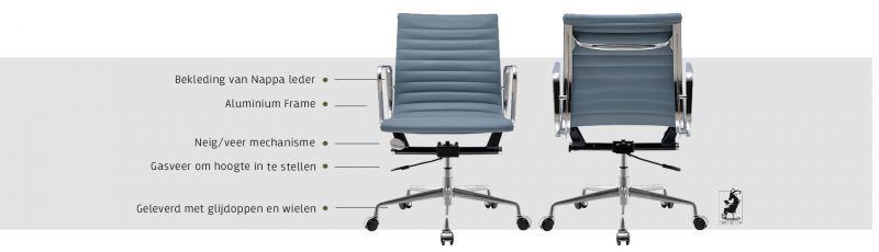 Deze EA117 is niet zomaar een bureaustoel, maar een premium model! Deze uitvoering is voorzien van prachtig soepel nappa leder en is met name op gebied van comfort, luxe en materialen aanzienlijk verbeterd! Het bekende en geliefde model van ontwerpers Charles & Ray Eames is nogsteeds erg populair en is te vinden in verschillende interieurs. Zowel een klassiek als modern interieur is de perfecte plek voor deze iconische bureaustoel. Met de premium uitvoering van Luie Stoel komt u nog dichter bij het origineel!