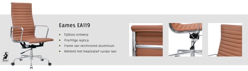 Deze Eames bureaustoel komt weliswaar uit de collectie van 1958, maar is nog steeds een tijdloos ontwerp. U zult ze in menig kantoor panden terugvinden. Zowel met een hoge als een lage rugleuning is dit een populair ontwerp. Het ontwerp duo Eames is er daarmee in geslaagd een ontwerp te maken wat gerust tijdloos te noemen is. De EA119 is nog steeds een geliefd ontwerp en past in elk modern interieur met een strakke of minimalistische sfeer. De prijs van deze originele stoel kan erg oplopen, daarom bieden wij een prachtige replica aan van dit iconische ontwerp. Met dit model, wat gemaakt is van de mooiste materialen, kunt u als Eames liefhebber genieten van een prachtige bureaustoel!