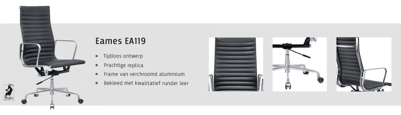 Deze Eames bureaustoel komt weliswaar uit de collectie van 1958, maar is nog steeds geen achterhaald ontwerp. U zult ze in menig kantoor panden terugvinden. Zowel met een hoge als een lage rugleuning is dit een populair ontwerp. Het ontwerp duo Eames is er daarmee in geslaagd een ontwerp te maken wat gerust tijdloos te noemen is. De EA119 is nog steeds erg populair en past in elk modern interieur met een strakke of minimalistische tint. De prijs van deze originele stoel kan erg oplopen, daarom bieden wij een prachtige replica aan van dit iconische ontwerp die van de mooiste materialen gemaakt is. Zo kunt u als Eames liefhebber genieten van een mooie en comfortabele stoel!