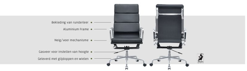 De softpad hoge bureaustoel van Eames lijkt misschien op de aluminium Group, maar onderscheid zich toch door de fijne kussens. De 3 extra kussens op de zitting en tegen de rugleuning zorgen niet alleen voor comfort, maar zien er ook nog eens heel uitnodigend uit. Met dit design heeft designerduo Charles & Ray Eames er wederom voor gezorgd dat dit tijdloze ontwerp nog steeds geliefd is. Bent u ook een Eames liefhebber? Dan zult u deze bureaustoel zeker waarderen. Met onze keuzes voor luxe en materialen van goede kwaliteit, zit u altijd goed! Deze stoel bieden we niet alleen in zwart aan, maar ook in cognac en wit leer.