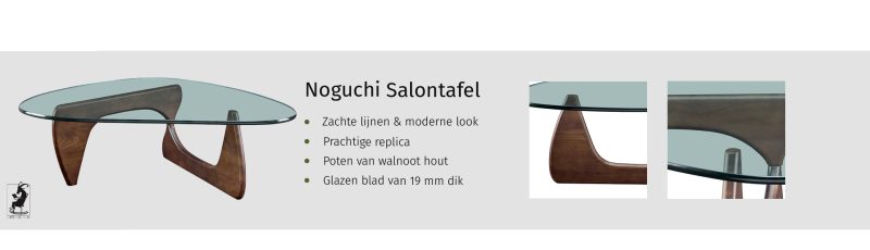 De Noguchi salontafel is een prachtig stukje design en nog altijd zeer gewild. In het verrassende ontwerp met ronde vormen vind je de Japanse invloeden van de ontwerper terug. De tafelpoten zijn haaks op elkaar geplaatst, wat het ontwerp een artistiek tintje geeft. De combinatie van donker walnoot hout en glas geeft de Noguchi salontafel een klassiek karakter, met een moderne twist.